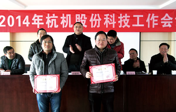 杭機(jī)股份2014年科技工作會(huì)議暨公司首屆科技節(jié)于2月14日舉行。此次2013年度科技創(chuàng)新成果進(jìn)行了表彰,共表彰了科技創(chuàng)新獎(jiǎng)12項(xiàng)和節(jié)約獎(jiǎng)17項(xiàng)??萍紕?chuàng)新獎(jiǎng)包括新產(chǎn)品開發(fā)獎(jiǎng)6項(xiàng)、工藝技術(shù)創(chuàng)新獎(jiǎng)2項(xiàng)和申請(qǐng)專利獎(jiǎng)4項(xiàng)。公司高層為獲獎(jiǎng)?wù)叽眍C發(fā)了榮譽(yù)證書。